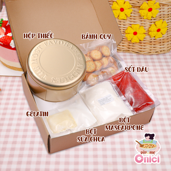 ✨ Nguyên liệu sẽ bao gồm: Bánh quy, gelatin, mứt chanh dây (hoặc dâu/việt quất), túi bột mousse, túi bột sữa chua, hộp thiếc sang trọng.