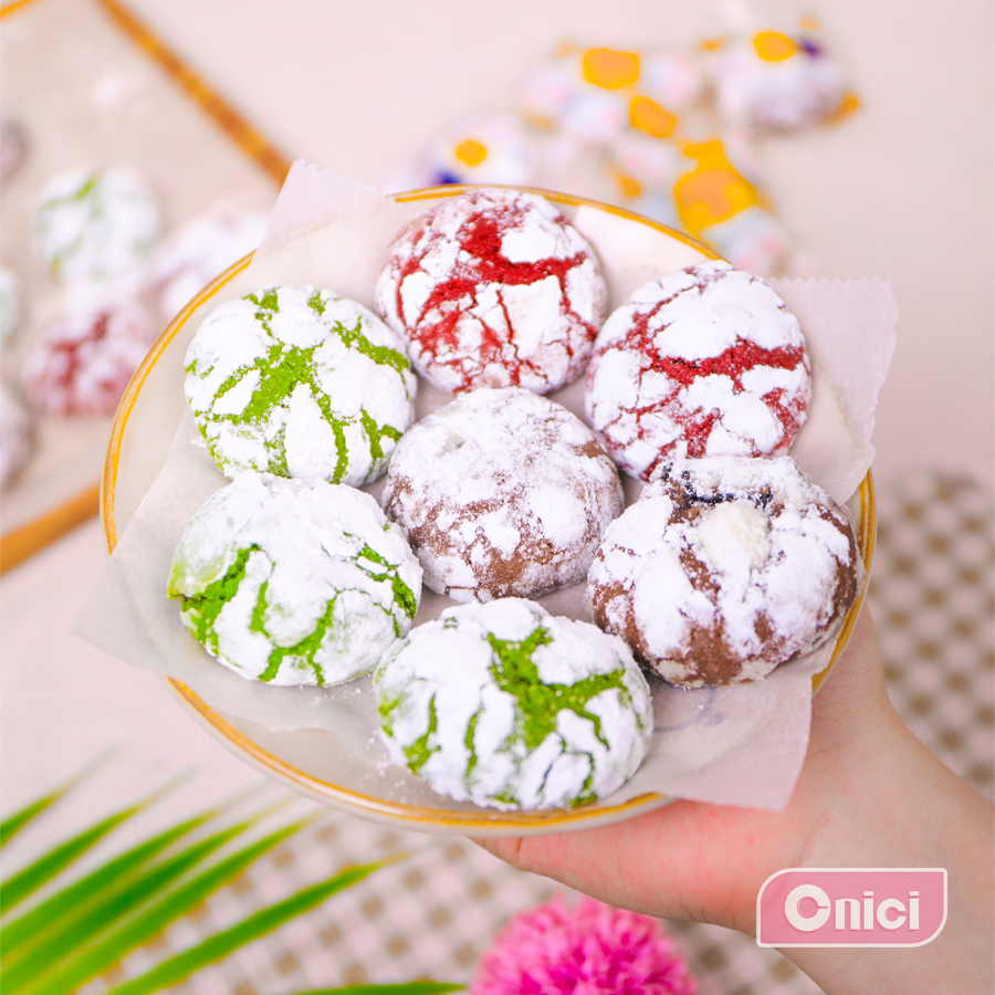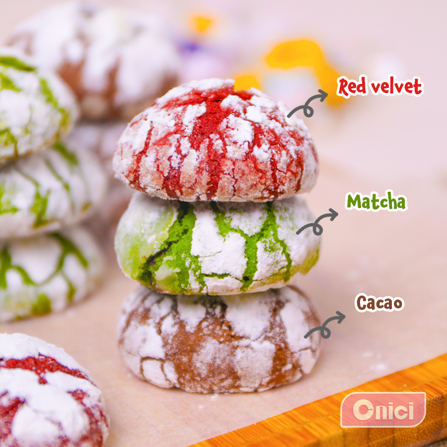 | SET NGUYÊN LIỆU LÀM BÁNH CRINKLE, THÀNH PHẨM 30 CÁI - 3 VỊ: MATCHA/ CACAO/ RED VELVET | BẾP CỦA MẸ ONICI Bánh crinkle của Onici Oheasy – còn gọi là bánh quy tuyết – với lớp đường trắng phủ ngoài như bông tuyết rơi, đẹp mắt và chuẩn vị mùa lễ hội. Trong set đã chuẩn bị sẵn nguyên liệu, công thức chi tiết, làm lần nào cũng thành công. Một set làm được nhiều bánh, có đủ 3 vị: cacao đậm đà, matcha thanh nhẹ và red velvet sang chảnh, ăn là ghiền ngay. -------------------------- Set bánh Crinkle gồm các nguyên liệu sau: - Bột mì - Bột matcha - Bột cacao - Bột men đỏ koji - Vani - Đường xay - Bột nở - Túi đựng bánh cookie - Tờ hướng dẫn cực kỳ chi tiết