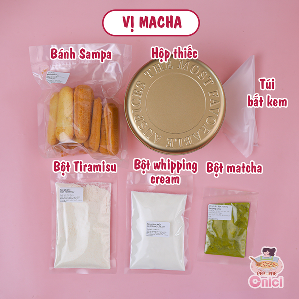 Set nguyên liệu làm bánh Tiramisu hộp thiếc cao cấp – 2 vị tự chọn: Matcha hoặc Cacao | Onici Oheasy