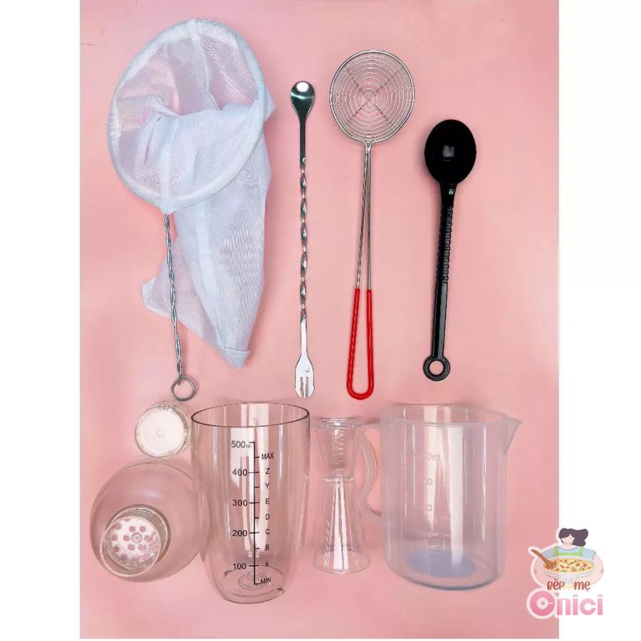 | BỘ DỤNG CỤ PHA CHẾ CHUYÊN DỤNG - ONICI OHEASY Để pha chế những ly trà sữa thơm ngon đúng chuẩn như ngoài quán, việc sử dụng dụng cụ chuyên dụng là không thể thiếu. Những công cụ này giúp quá trình pha chế trở nên đơn giản, nhanh chóng và đảm bảo hương vị hoàn hảo trong từng ly trà sữa. ----------------------------------------------- Bộ dụng cụ pha chế gồm: - Ca đong 500ml - Thìa, muổng đong định lượng 10g - Shaker trong 630ml - Thìa khuấy Barspoon 26cm - jigger nhựa chia vạch 20/40ml - Vợt vải lọc trà - Vợt múc topping, trân châu --------------------------------------- * Bảo quản: - Bảo quản nơi khô ráo và thoáng mát, tránh ánh nắng trực tiếp. —------------------------------------------------- Xuất xứ: Việt Nam ---------------------------------------------------- Bếp Của Mẹ Onici với phương châm BÁN HÀNG BẰNG TẤT CẢ CÁI TÂM. Chúng mình luôn nỗ lực cải tiến sản phẩm, cẩn thận từ khâu chọn nguyên liệu, đóng gói sản phẩm. Tâm huyết với chất lượng và hương vị sản phẩm. Tuy nhiên, mỗi khách hàng sẽ có khẩu vị khác nhau, mang đến những cảm nhận khác nhau. Cũng như nếu khi nhận hàng có sai xót, hay không hài lòng, xin đừng ngần ngại liên hệ Onici nhé. Onici luôn ghi nhận mọi sự đóng góp để sản phẩm và dịch vụ được tốt hơn. Để xứng với sự tin yêu của quý khách. |