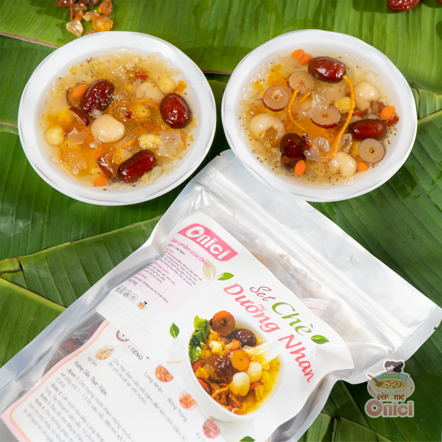 Chè Dưỡng Nhan – món chè thanh mát vừa ngon vừa tốt cho sức khỏe. Với 13 nguyên liệu thảo mộc quý như tuyết yến, bồ mễ, nhựa đào, hạt sen, hạt chia, táo đỏ… giúp làm sáng da, cải thiện giấc ngủ, lưu thông máu và giảm căng thẳng. Kèm công thức nấu đơn giản, set nấu chè Dưỡng Nhan Onici là lựa chọn hoàn hảo để tự tay thưởng thức món chè bổ dưỡng tại nhà.