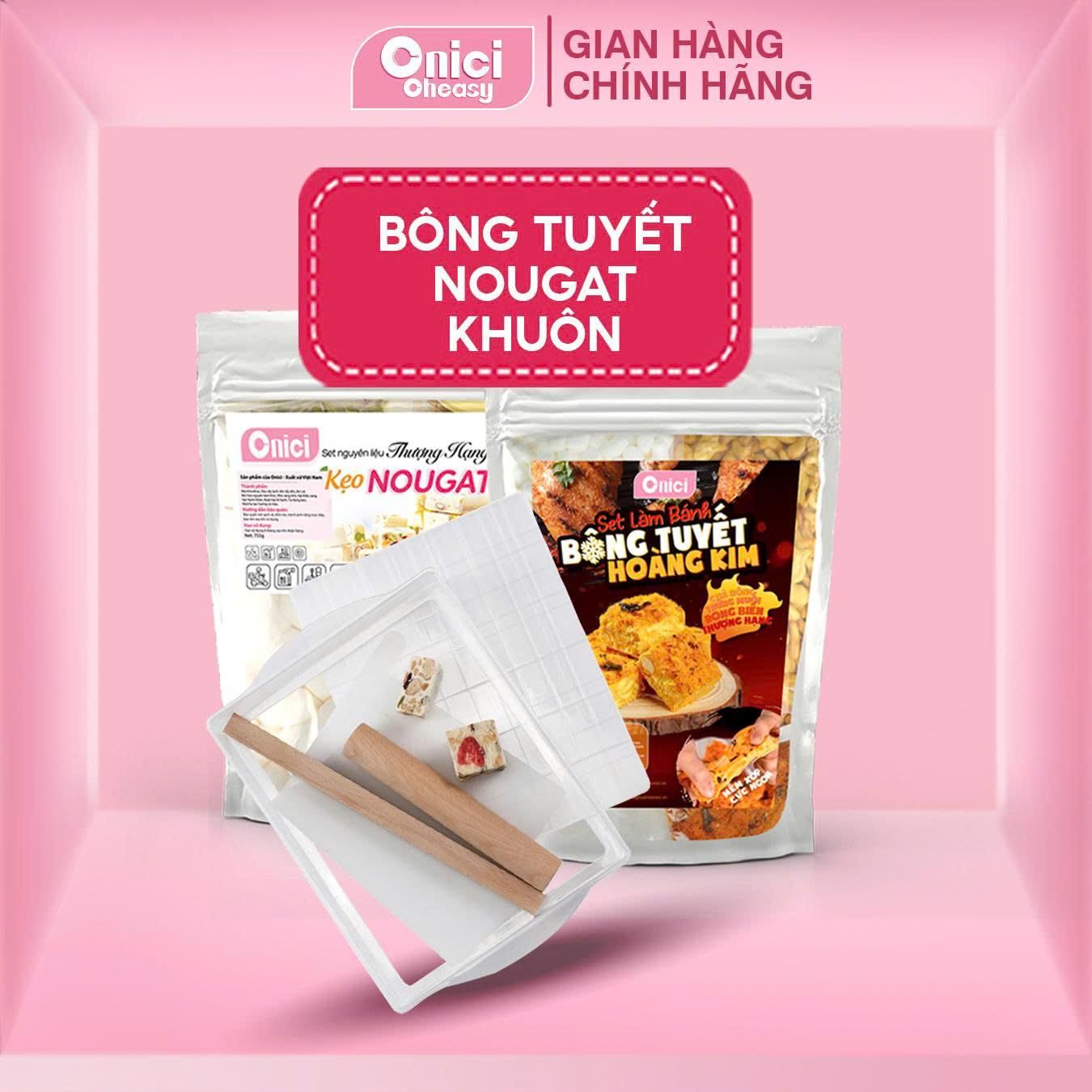 COMBO TẾT SUM VẦY - set nguyên liệu nougat thượng hạng, bánh bông tuyết hoàng kim và khuôn BẾP CỦA MẸ ONICI
