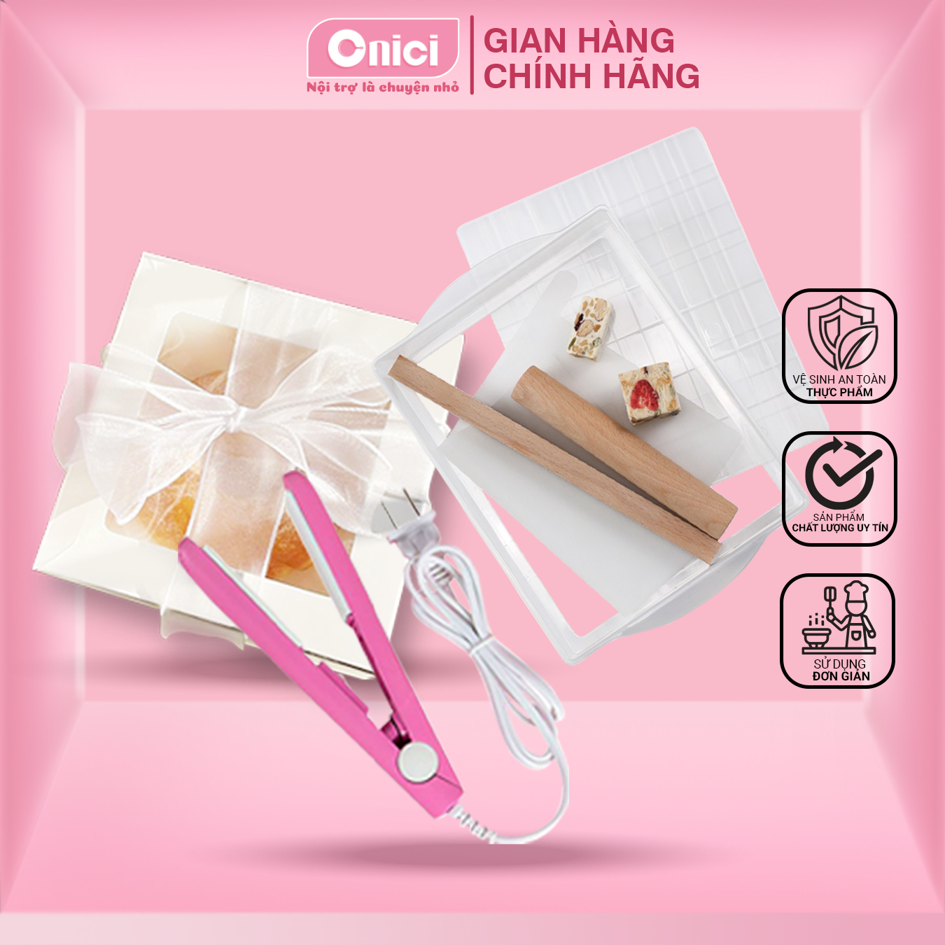 | COMBO TIỆN ÍCH: MÁY HÀN + KHUÔN + HỘP ĐỰNG QUÀ Onici OHEASY -------------------------- Bếp của mẹ Onici vừa ra mắt Combo siêu tiện ích gồm máy hàn miệng túi, khuôn chống dính làm bánh/ kẹovà hộp đựng quà. Giúp các tín đồ làm kẹo nougat hay bánh bông tuyết,... dễ dàng hơn trong từng công đoạn. Thay vì phải mất công chọn mua từng món riêng lẻ, giờ đây bạn chỉ cần chọn ngay combo này là đã có đầy đủ dụng cụ cần thiết, mà giá cả lại siêu hợp lý và ưu đãi hơn hẳn! -------------------------- * Combo tiện ích bao gồm: - Máy hàn miệng túi - 1 khay nhựa - 1 vạch chia, kích thước: 18.5x24x2cm (chia thành 60 viên kẹo) - 1 con lăn gỗ để cán phẳng bề mặt - 1 thanh gỗ vuông để lấy dấu - 1 tấm silicon phủ mặt kẹo khi cán - Hộp giấy cứng (16 x 16 x 7.5 cm) - Bịch giấy vụn trang trí - Dây thắt nơ -------------------------- * Hướng dẫn bảo quản: - Máy hàn: Lau sạch máy sau mỗi lần sử dụng để tránh bụi bẩn hoặc kẹo bám vào. Bảo quản ở nơi khô ráo, thoáng mát, tránh ẩm ướt. Không để máy gần các nguồn nhiệt hoặc ánh nắng trực tiếp. - Khuôn làm bánh/kẹo: Sau khi sử dụng, rửa sạch và để khô tự nhiên. Cất khuôn trong túi kín hoặc hộp đựng để tránh bụi. -------------------------- Xuất xứ: Việt Nam -------------------------- Bếp Của Mẹ Onici với phương châm BÁN HÀNG BẰNG TẤT CẢ CÁI TÂM. Chúng minh luôn nỗ lực cải tiến sản phẩm, cận thận từ khâu chọn nguyên liệu, đóng gói sản phẩm. Tâm huyết với chất lượng và hương vị sản phẩm. Tuy nhiên, mỗi khách hàng sẽ có khẩu vị khác nhau, mang đến những cảm nhận khác nhau. Cũng như nếu khi nhân hàng có sai xót, hay không hài lòng, xin đừng ngần ngại liên hệ Onici nhé. Onici luôn ghi nhận mọi sự đóng góp để sản phẩm và dịch vụ được tốt hơn. Để xứng với sự tin yêu của qúy khách. |