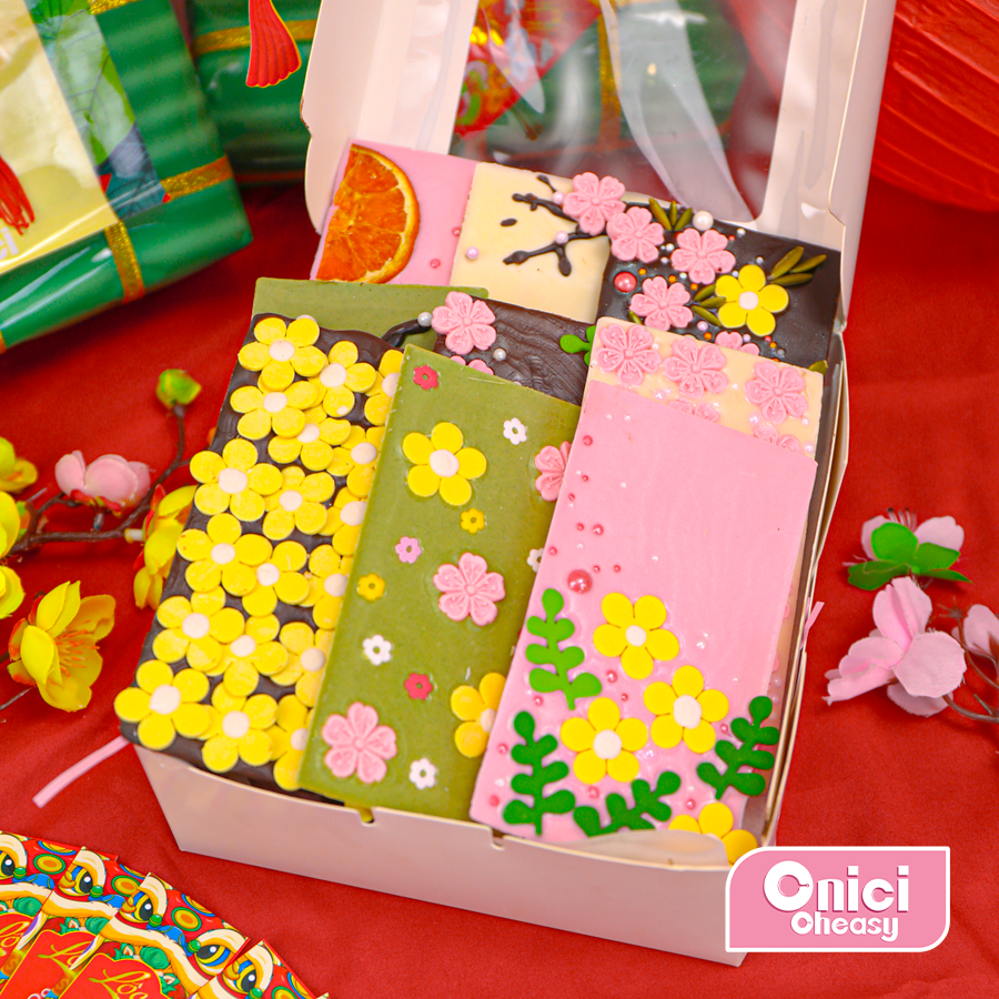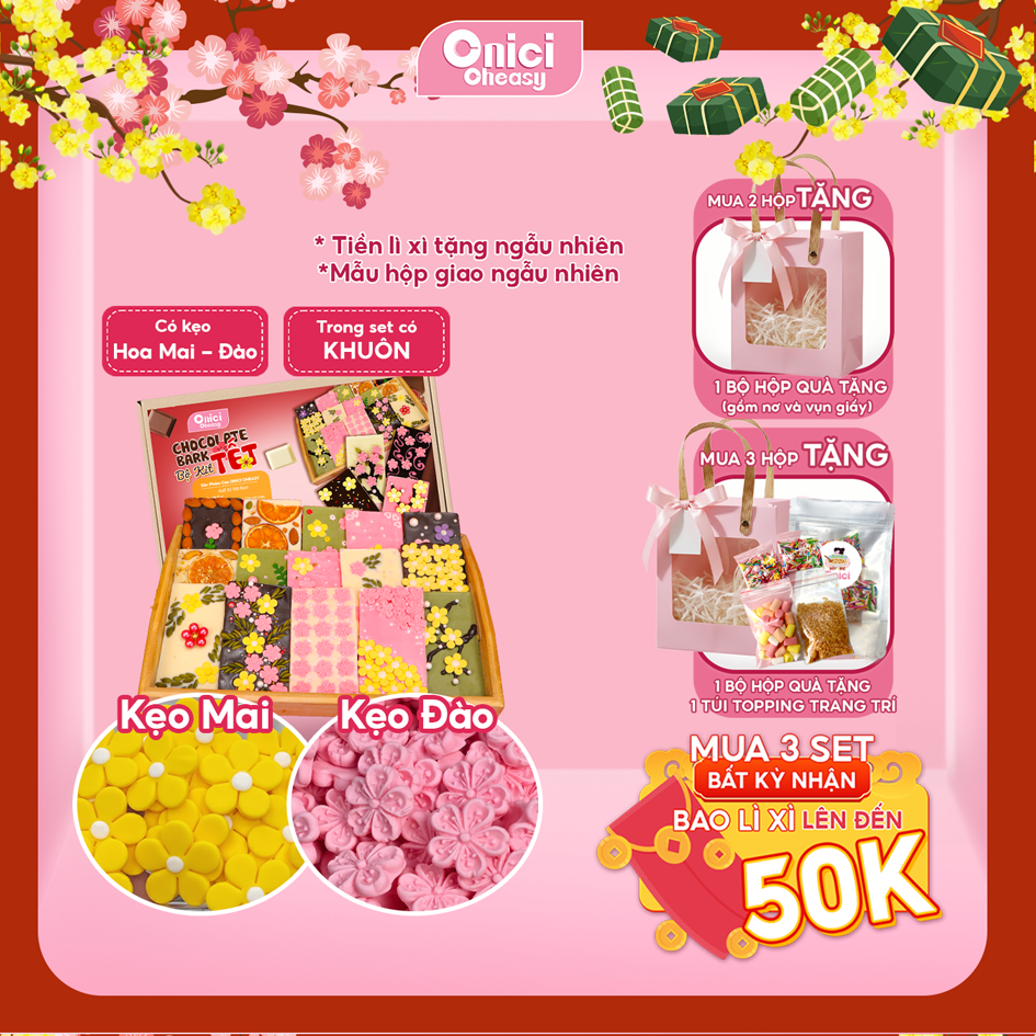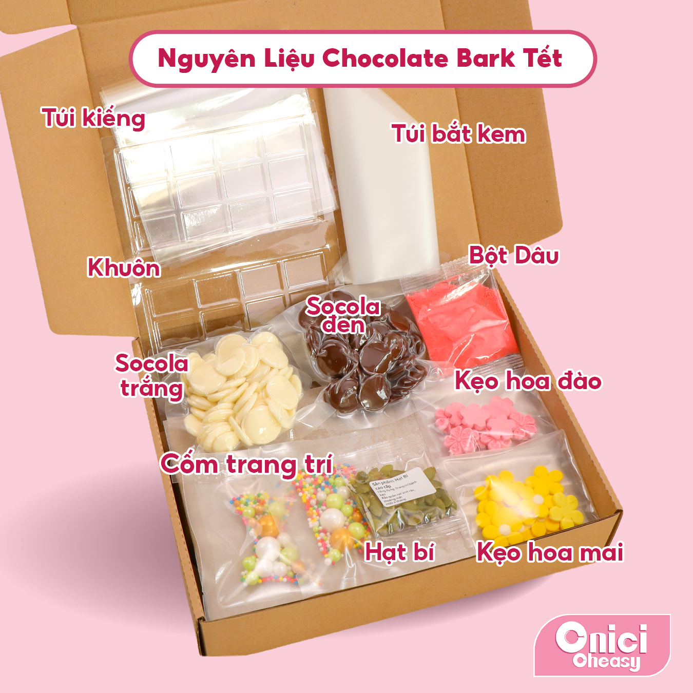 | Set nguyên liệu Chocolate Bark, socola thanh Onici Oheasy thành phẩm 6 THANH 3 VỊ. —------------------------------------------------------------------------ SET NGUYÊN LIỆU CHOCOLATE BARK - [Thành phẩm 6 thanh 3 vị ] - ONICI OHEASY Chocolate Bark, hay thanh chocolate phiên bản cho ngày tết có những bông hoa mai hoa đào một phiên bản chưa từng có trước giờ, đang trở thành xu hướng quà tặng ngọt ngào và độc đáo được nhiều người yêu thích. Với sự kết hợp giữa hương vị đậm đà của chocolate và sự giòn thơm của các loại hạt, ngọt ngọt của những viên kẹo đường hình bông hoa, món ăn này mang lại cảm giác thú vị khó quên cho bất kỳ ai thưởng thức. —----------------------------------------------------------------------- * Thành phần nguyên liệu trong 1 bộ nguyên liệu Chocolate Bark nhà Onici gồm có: *Dụng cụ: - Khuôn socola - Túi bắt kem - Bọc kiếng - Tờ hướng dẫn (Nếu bạn bị thất lạc tờ công thức đừng ngại inbox cho shop để được hỗ trợ) *Nguyên liệu: - Socola trắng - Socola đen - Bột dâu - Cốm mix màu - Cốm màu mix thanh - Kẹo hoa mai - Kẹo hoa đào -Hạt bí xanh —------------------------------------------------------------ * Thành phẩm Chocolate Bark: - Làm ra được 6 thanh chocolate bark lớn (3 vị socola). —------------------------------------------------------------ * Lưu ý cách bảo quản Chocolate Bark: - Thành phẩm chocolate bark sau khi làm ra, bảo quản trong ngăn mát được 1 tháng - Chocola bark nên bọc kín, bảo quản nơi khô ráo thoáng mát, tránh ánh nắng trực tiếp - Nếu bảo quản chocolate bark bên ngoài thì không để quá 5 ngày kể từ lúc làm ra thành phẩm. - Nguyên liệu làm không hết bỏ vô túi và hộp đậy kín lại. HSD: 6 tháng kể từ ngày nhận hàng. Xuất xứ: Việt Nam —--------------------------------------------------------- Onici Oheasy với phương châm BÁN HÀNG BẰNG TẤT CẢ CÁI TÂM. Chúng mình luôn nỗ lực cải tiến sản phẩm, cẩn thận từ khâu chọn nguyên liệu, đóng gói sản phẩm. Tâm huyết với chất lượng và hương vị sản phẩm. Tuy nhiên, mỗi khách hàng sẽ có khẩu vị khác nhau, mang đến những cảm nhận khác nhau. Cũng như nếu khi nhận hàng có sai xót, hay không hài lòng, xin đừng ngần ngại liên hệ Onici nhé. Onici luôn ghi nhận mọi sự đóng góp để sản phẩm và dịch vụ được tốt hơn. Để xứng với sự tin yêu của quý khách. |