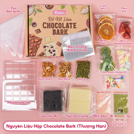 * Thành phần nguyên liệu trong 1 bộ nguyên liệu Chocolate Bark nhà Onici gồm có: