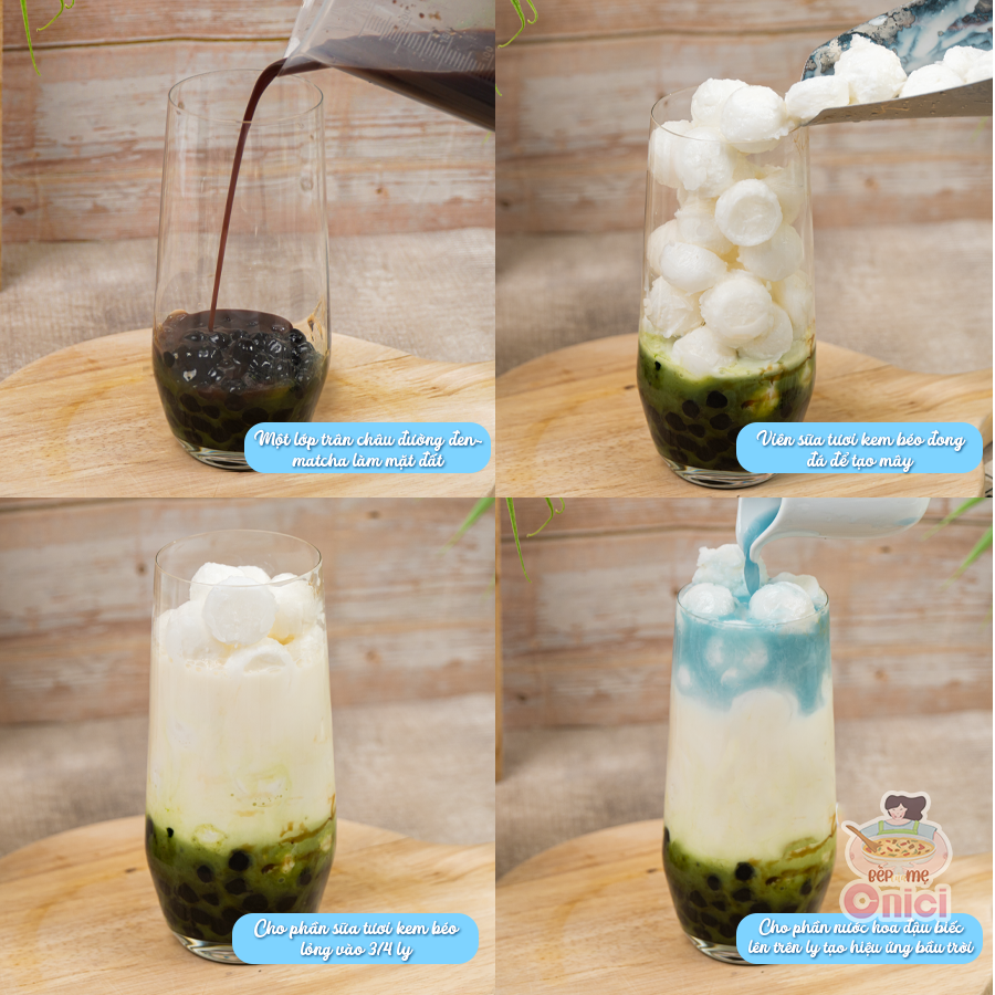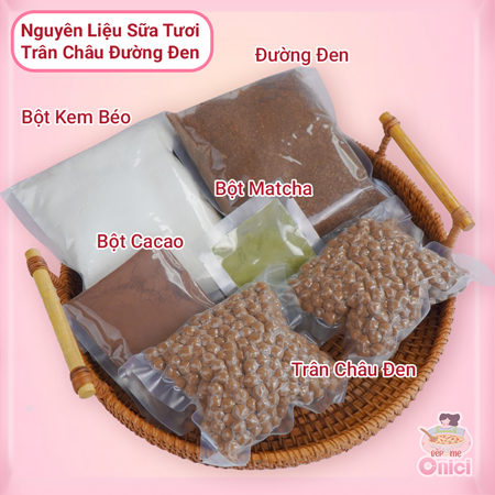Set nguyên liệu Sữa Tươi Trân Châu đường đen Bếp Onici đầy đủ thành phần: