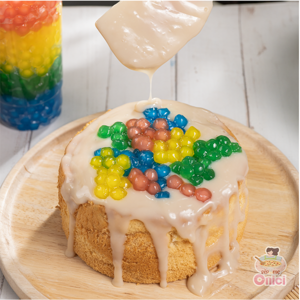 | Trân Châu Cầu Vồng (500g) BẾP CỦA MẸ ONICI - Kèm công thức nấu -------------------------- Không còn là màu trân châu dẻo dai truyền thống Onici mang đến cho cả nhà set nấu trân châu cầu vồng đầy bắt mắt. Có thể kết hợp trong nhiều món ăn khác nhau. Màu trân châu được làm từ màu tự nhiên, ăn vào dẻo dai thơm và hình thức thì óng ánh sắc màu Onici sẽ chuẩn bị sẵn cho cả nhà 1 túi gồm có 5 màu trân châu khác nhau. Mua về cả nhà chỉ việc nấu theo công thức là có ngay thành phẩm thơm ngon.