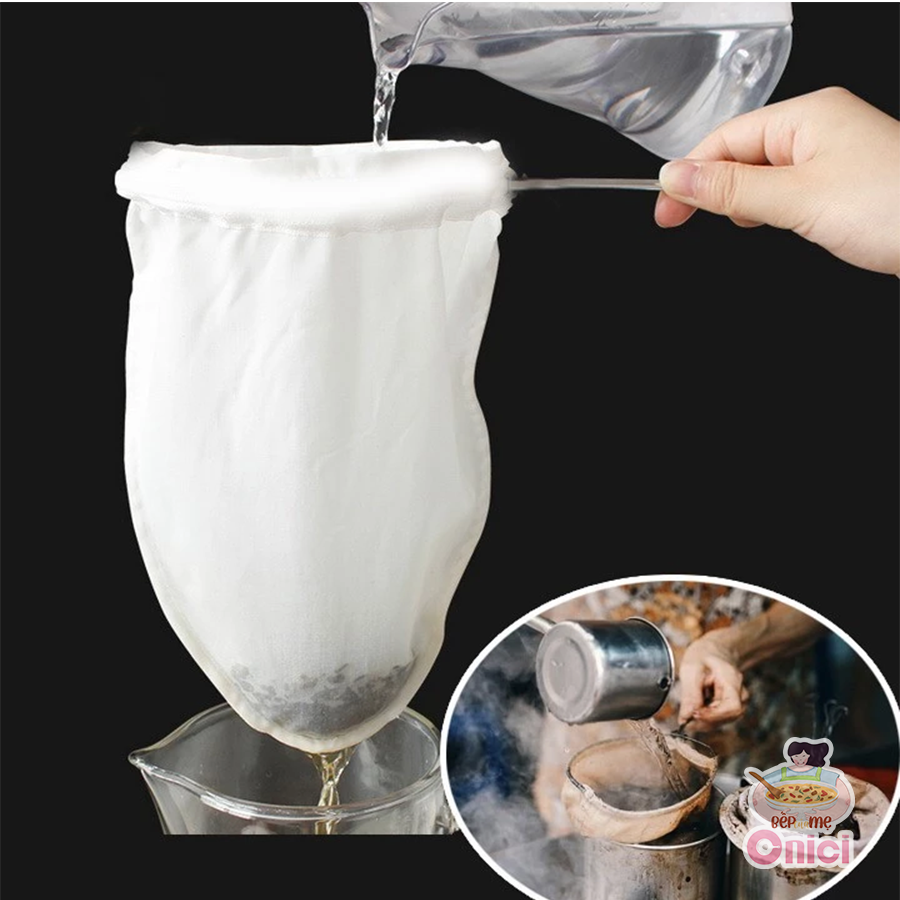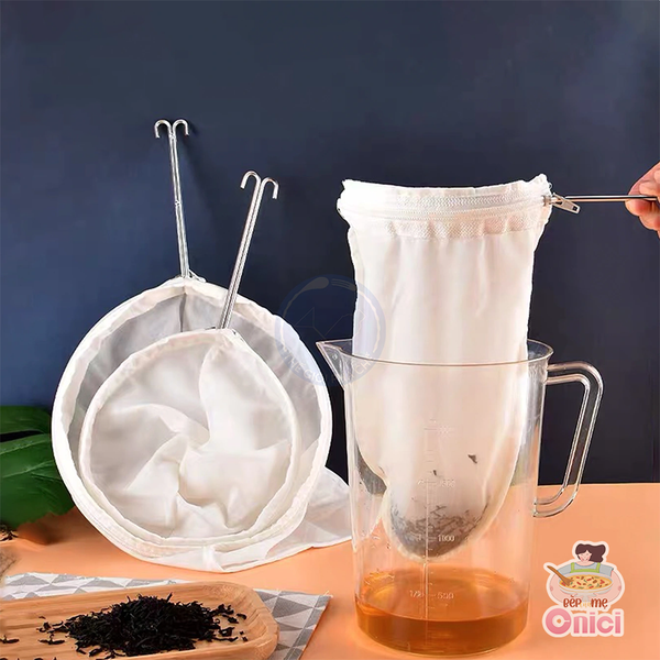 Vợt vải trắng lọc trà, cafe quai inox Bếp Của Mẹ Onici